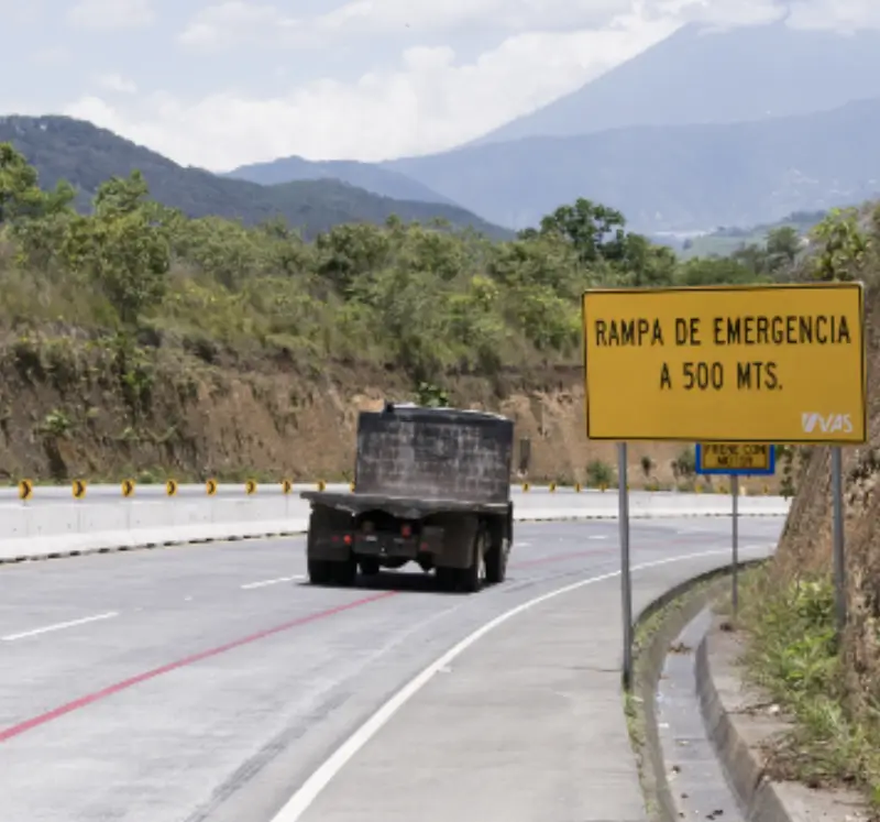 Infraestructura diseñada para frenar automáticamente vehículos que pierden el control de frenado. VAS cuenta con 3 rampas activas que salvan vidas.